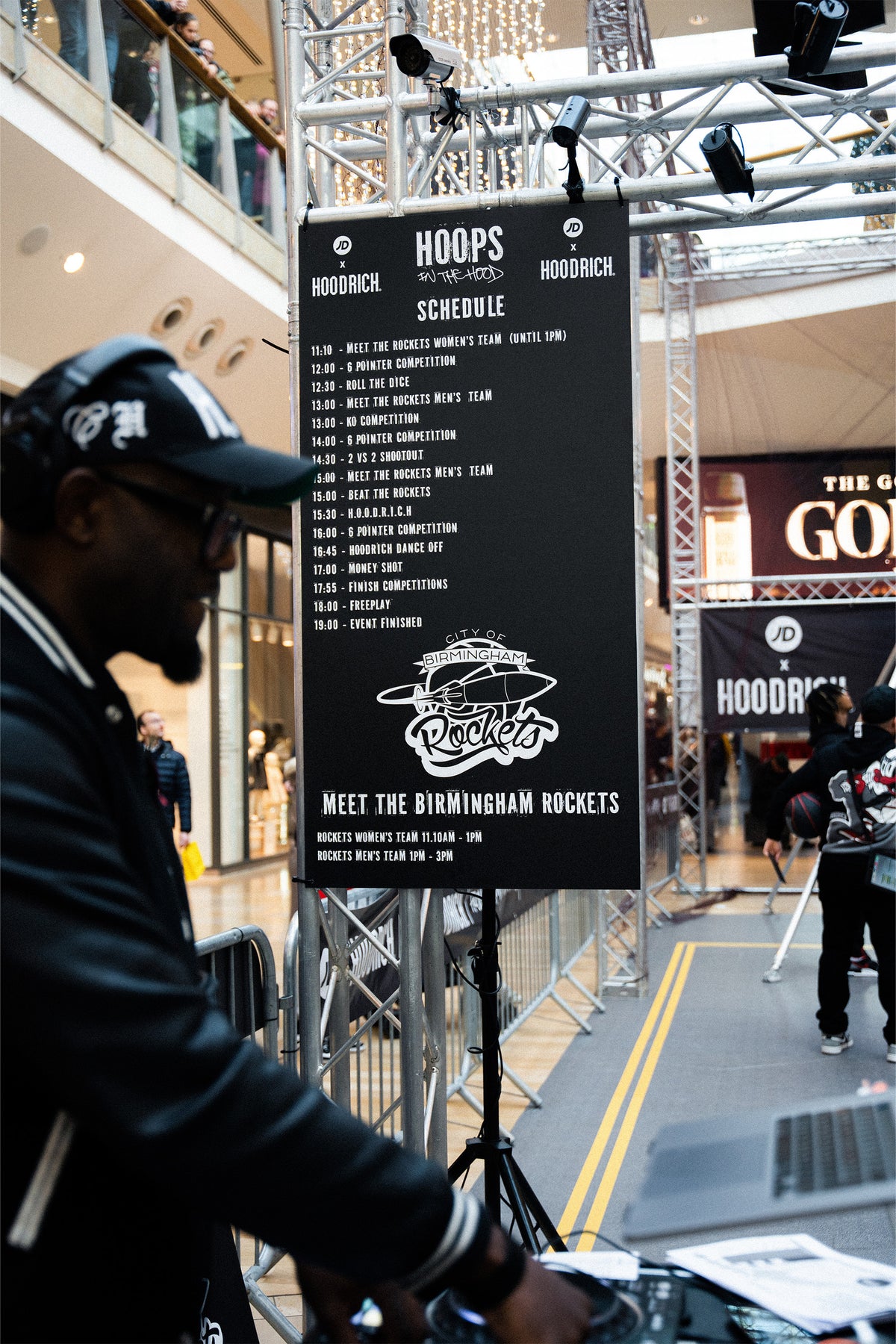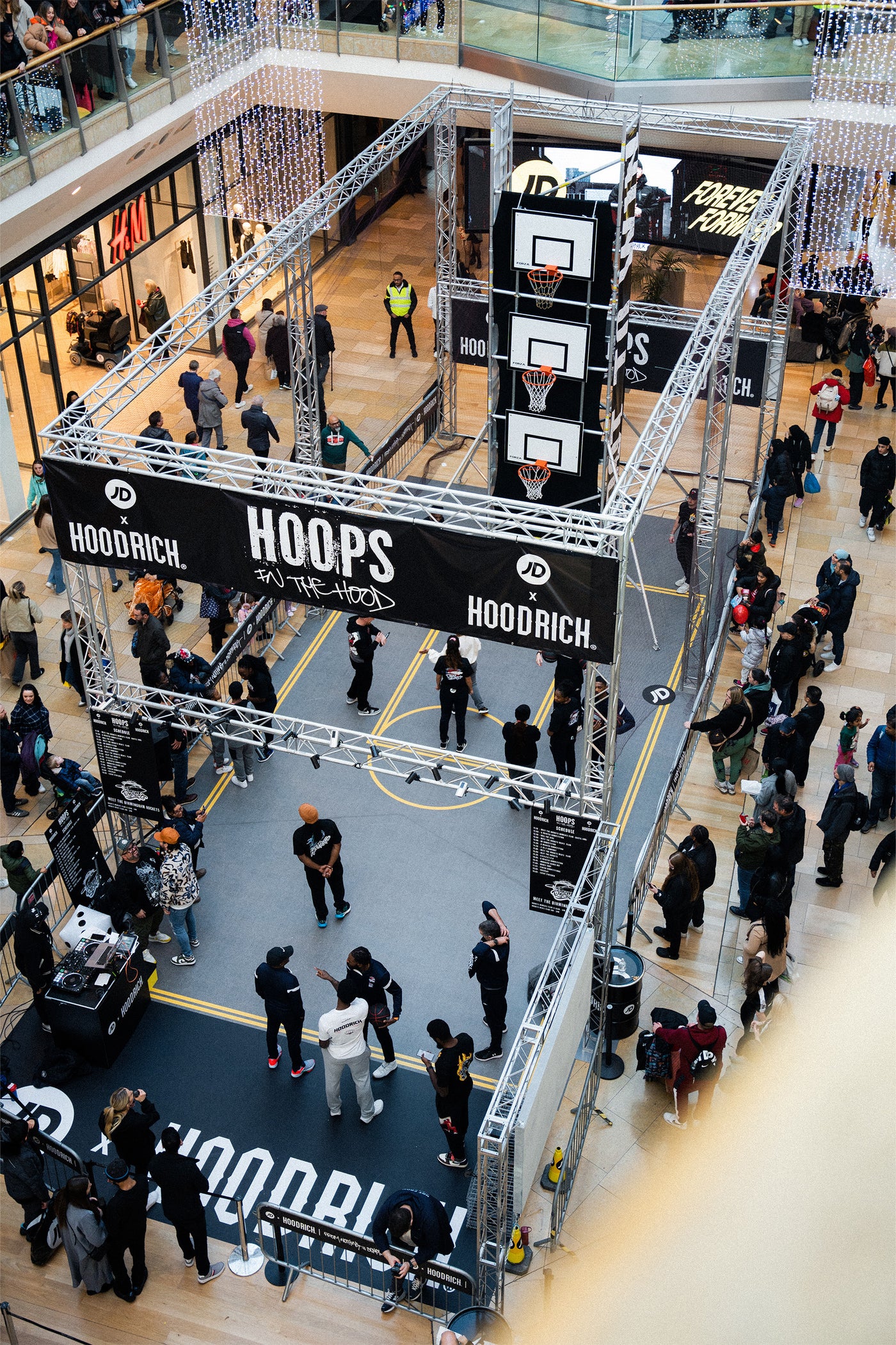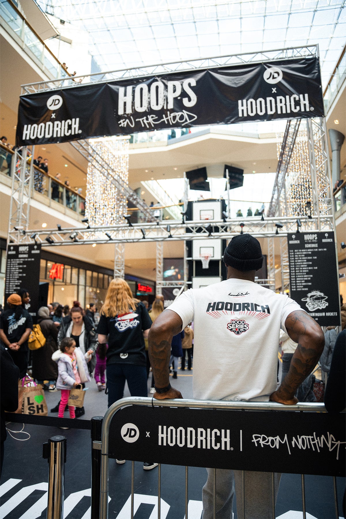 The opening of the new JD Birmingham Bullring store was marked by bringing the outdoors inside with 'Hoops in the Hood.' The public were able to meet the Birmingham Rockets, a team local to where the Hoodrich brand was founded, and were given the chance to win various prizes such as gift bags with exclusive Hoodrich merch and gift vouchers.